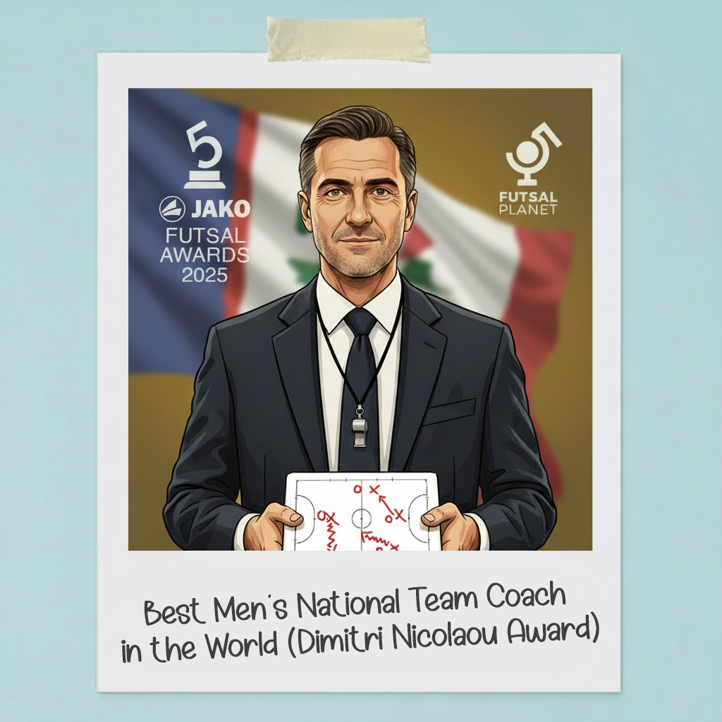 Futsalplanet.comJako Futsal Awards 2025Best Men´s National Team Coach in the World (Dimitri Nicolaou Award)Check the ten nominees: click here!